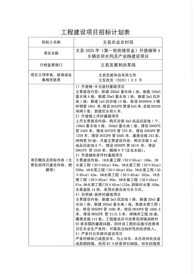 文縣2025年(第一批銜接資金)丹堡鎮(zhèn)等4鄉(xiāng)鎮(zhèn)農(nóng)田水利及產(chǎn)業(yè)路建設(shè)項(xiàng)目