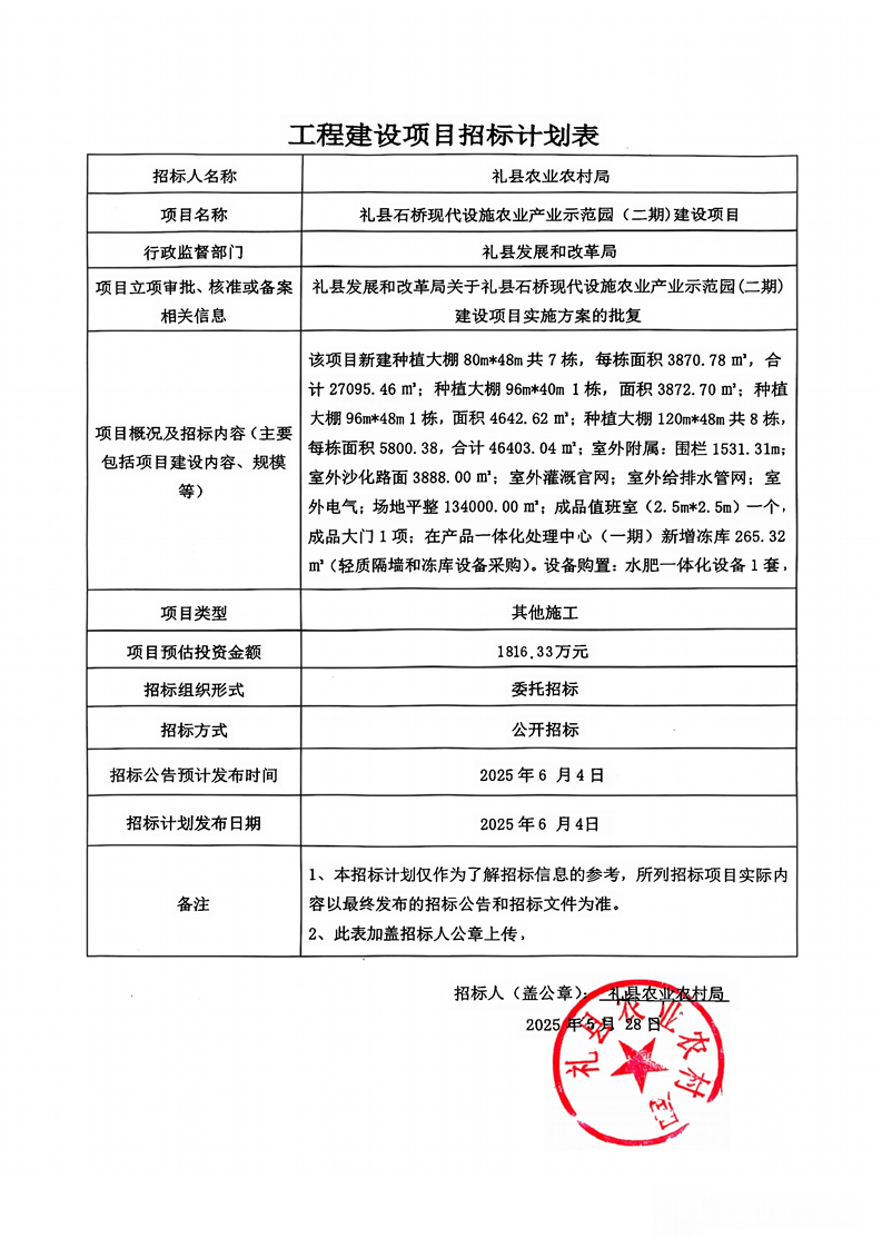 禮縣石橋現(xiàn)代設(shè)施農(nóng)業(yè)產(chǎn)業(yè)示范園(二期)建設(shè)項目