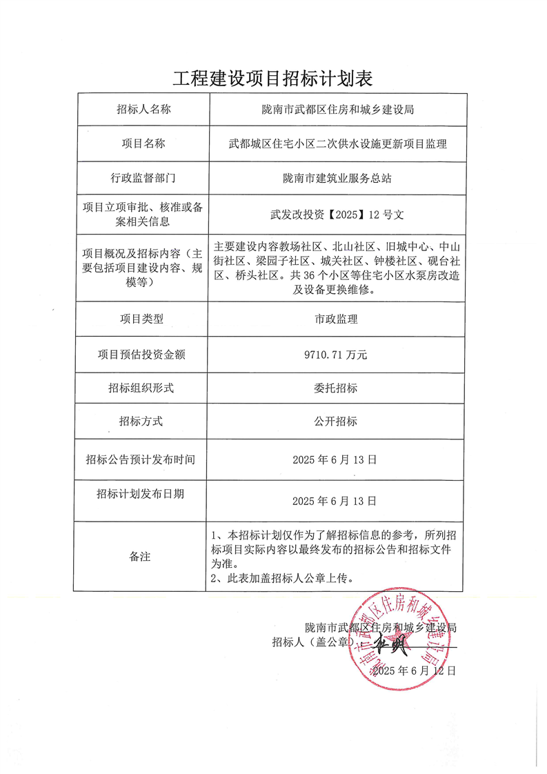 武都城區(qū)住宅小區(qū)二次供水設(shè)施更新項(xiàng)目監(jiān)理