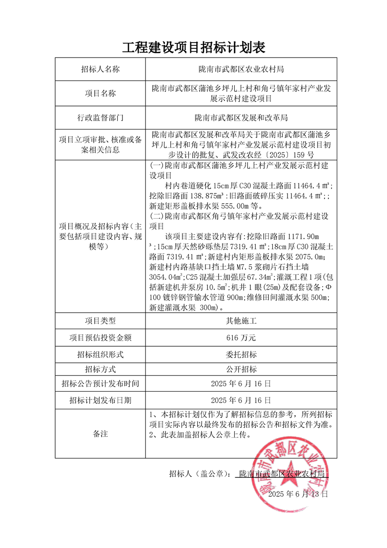 隴南市武都區(qū)蒲池鄉(xiāng)坪兒上村和角弓鎮(zhèn)年家村產(chǎn)業(yè)發(fā)展示范村建設(shè)項目