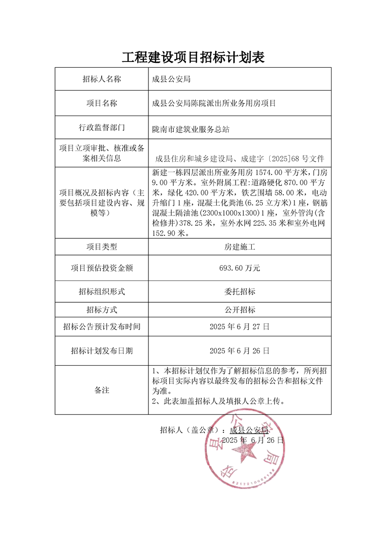 成縣公安局陳院派出所業(yè)務(wù)用房項目