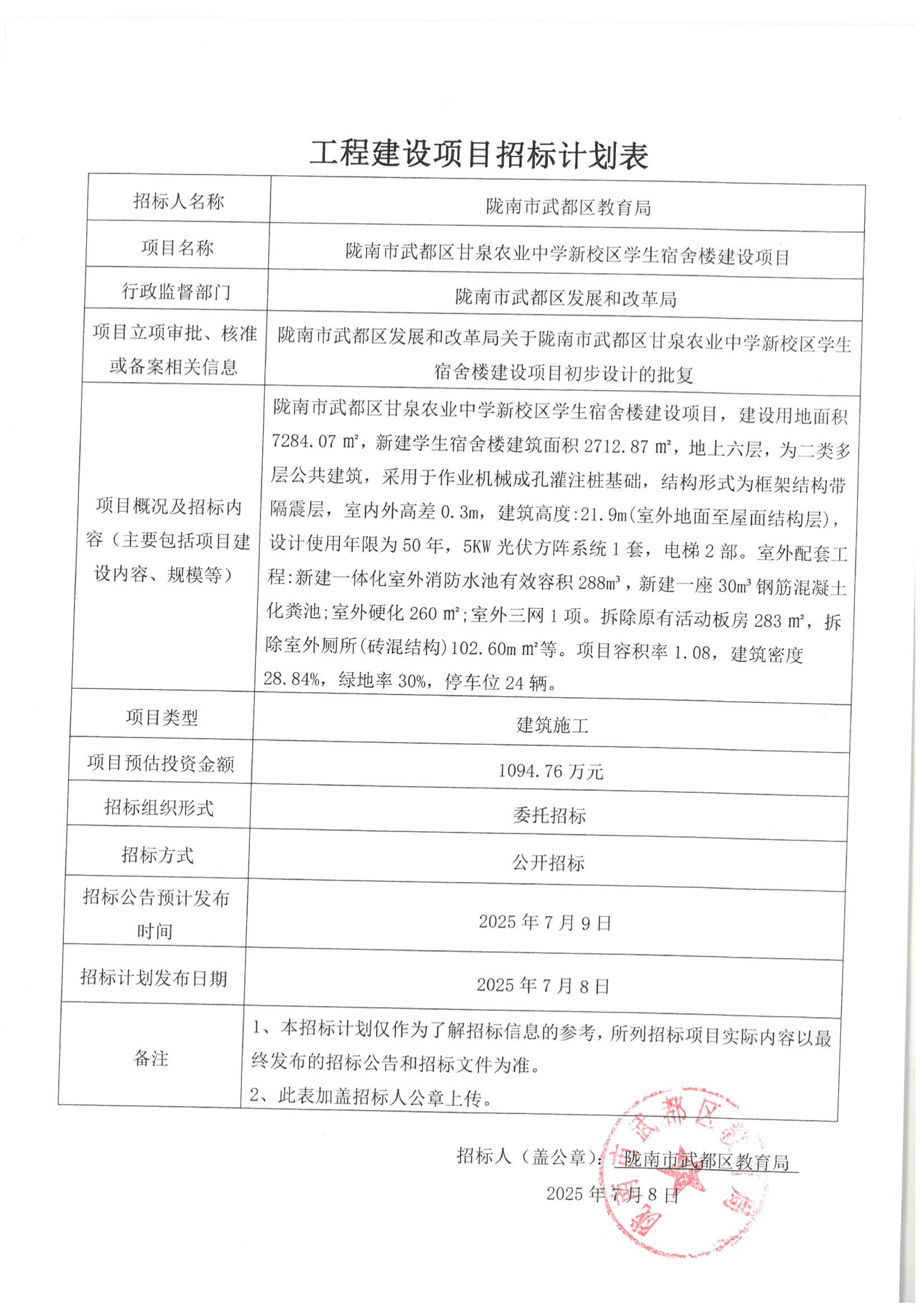 隴南市武都區(qū)甘泉農(nóng)業(yè)中學(xué)新校區(qū)學(xué)生宿舍樓建設(shè)項目