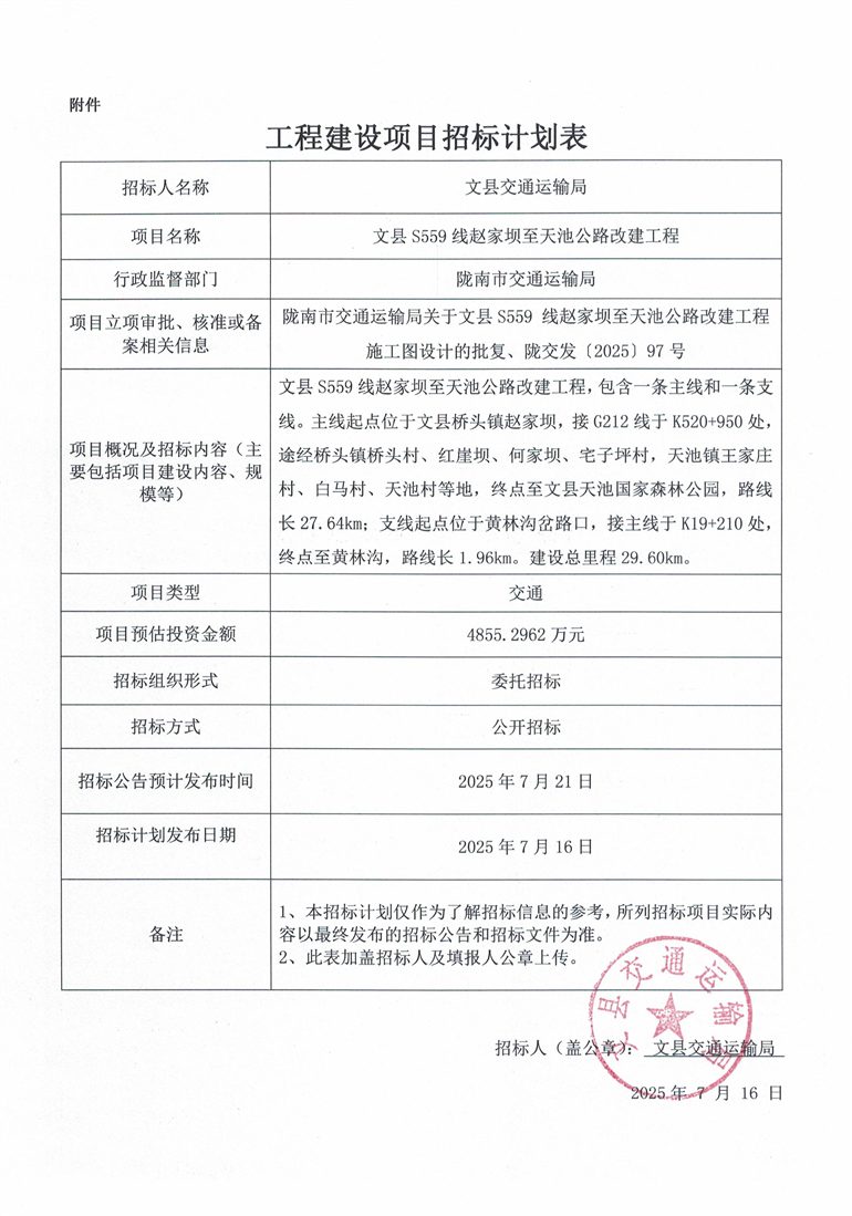 文縣S559線趙家壩至天池公路改建工程工程招標(biāo)計(jì)劃表.pdf