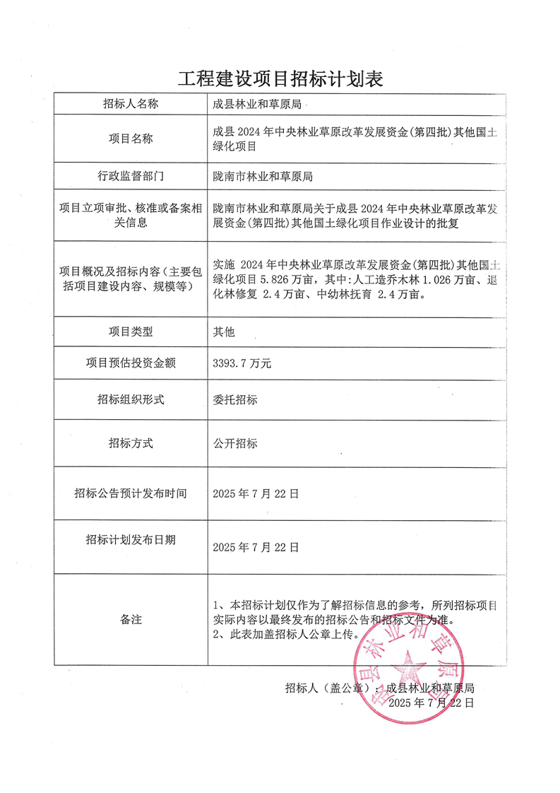 成縣2024年中央林業(yè)草原改革發(fā)展資金(第四批)其他國土綠化項(xiàng)目