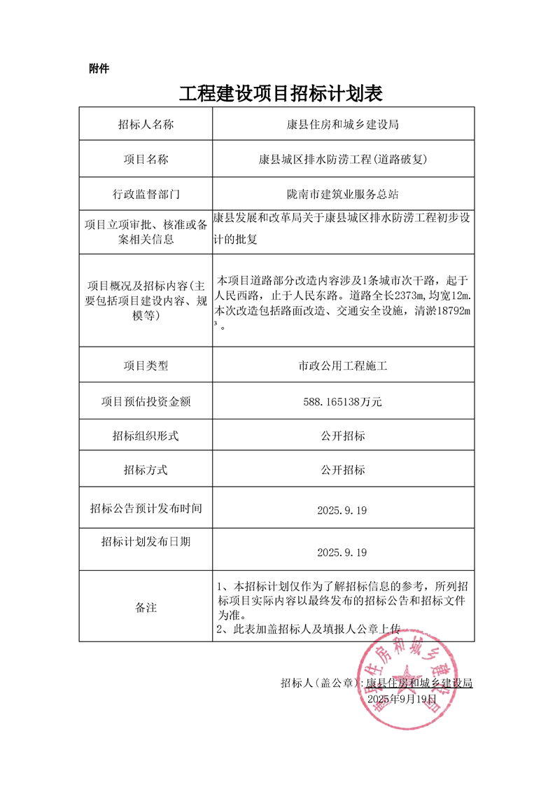 康縣城區(qū)排水防澇工程(道路破復(fù))
