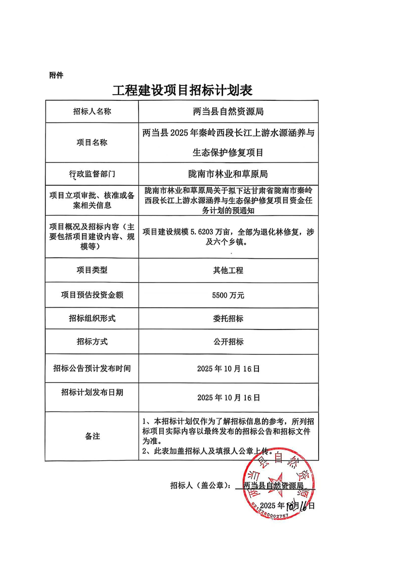 兩當(dāng)縣2025年秦嶺西段長(zhǎng)江上游水源涵養(yǎng)與生態(tài)保護(hù)修復(fù)項(xiàng)目