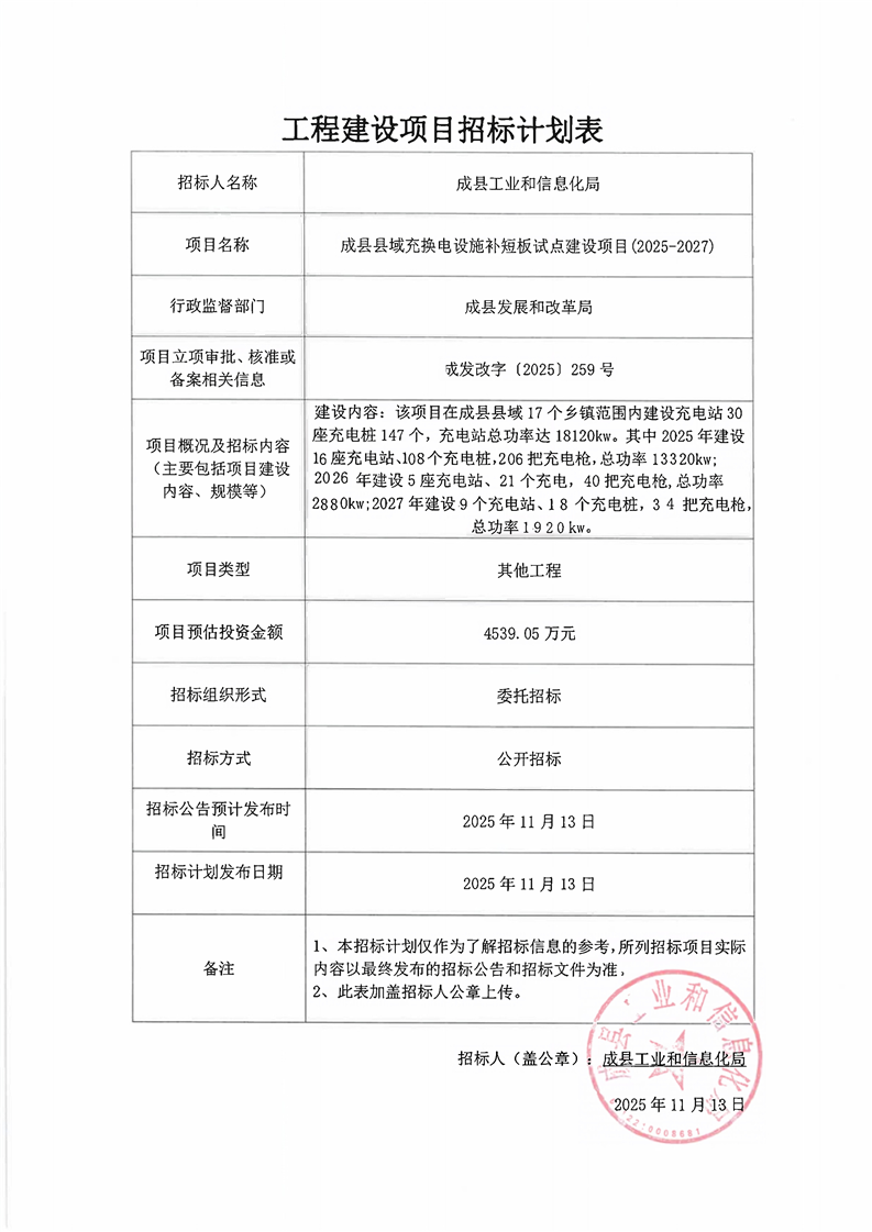 成縣縣域充換電設(shè)施補(bǔ)短板試點(diǎn)建設(shè)項(xiàng)目(2025-2027)