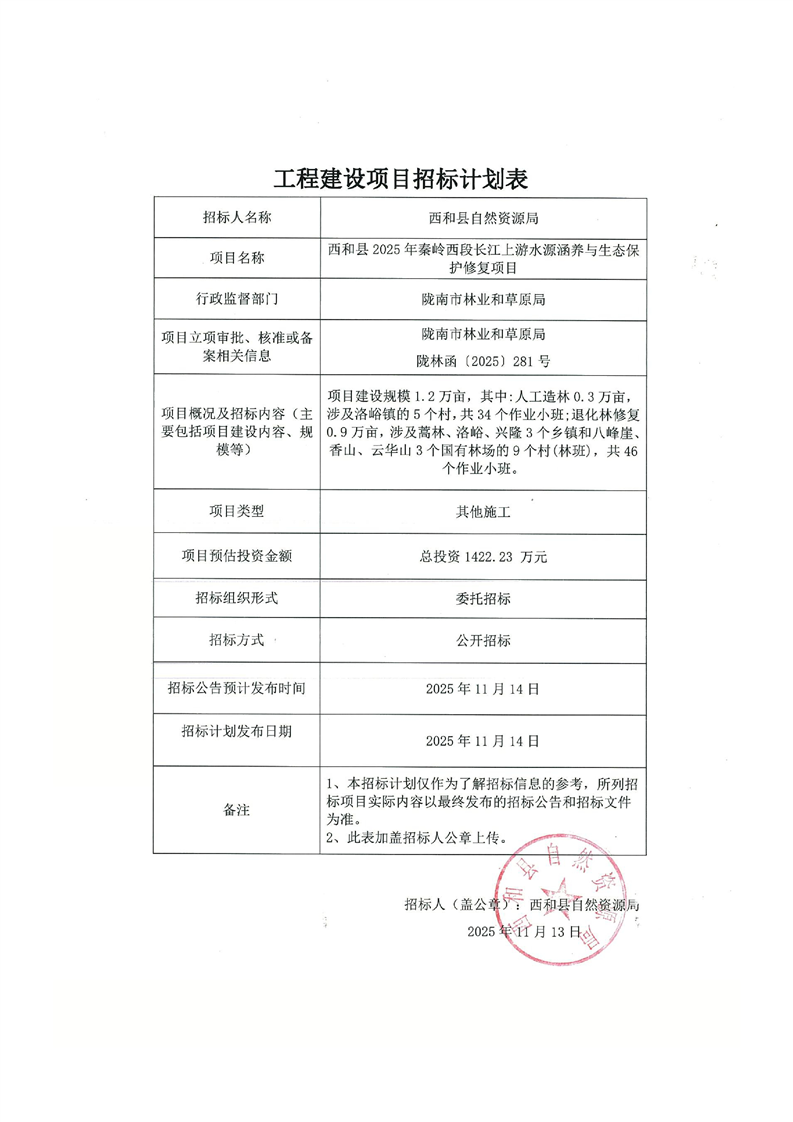 西和縣2025年秦嶺西段長江上游水源涵養(yǎng)與生態(tài)保護(hù)修復(fù)項(xiàng)目