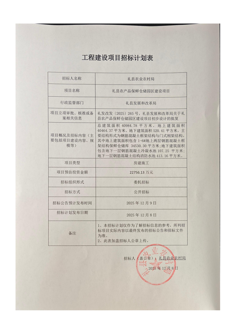 禮縣農產品保鮮倉儲園區(qū)建設項目