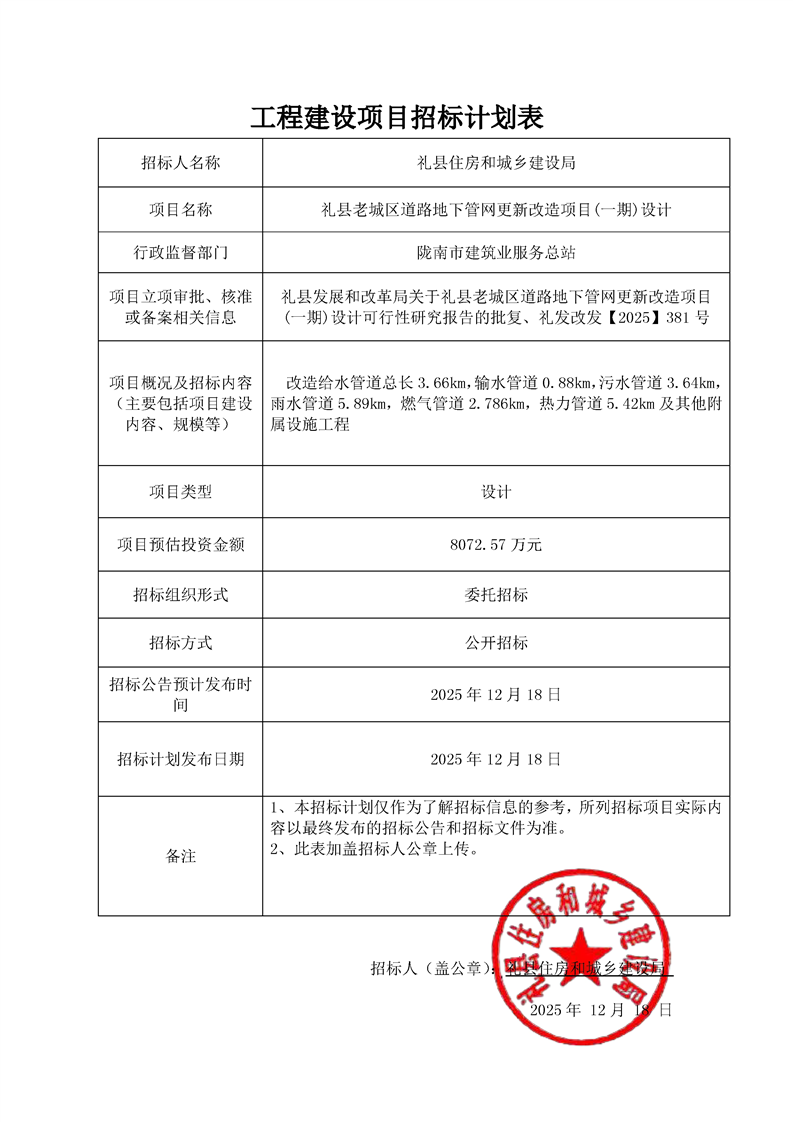 禮縣老城區(qū)道路地下管網(wǎng)更新改造項(xiàng)目(一期)設(shè)計(jì)