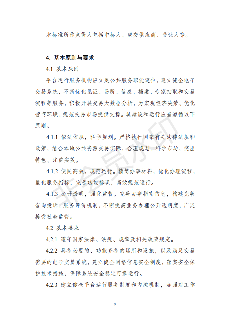 ??一、各地區(qū)應根據(jù)有關法律法規(guī)及《標準》,按照簡化流程、提高效率、公開透明的要求,結合本地實際,制定本行政區(qū)域的公共資源交易平臺服務標準,以標準化推進全流程電子化、服務便捷化。